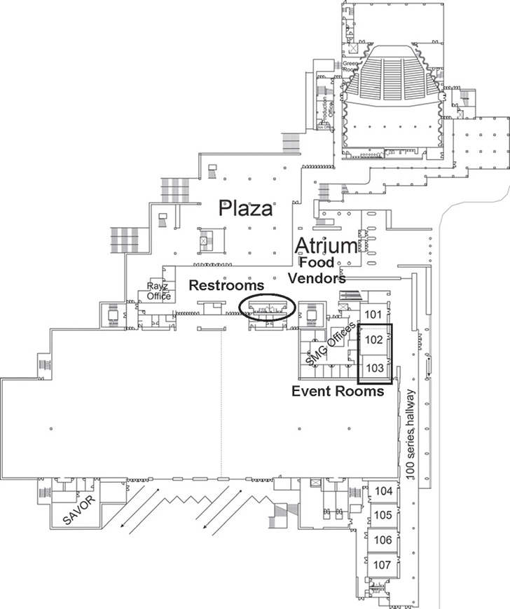 Lower level events to be held in Rooms 101–103 (see boxed area)
